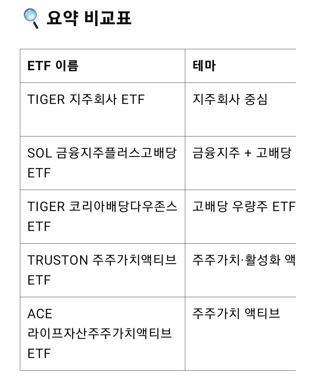 따라서 지주회사·금융지주·배당주 중심 ETF가 정책 수혜를 가장 크게 받을 전망임