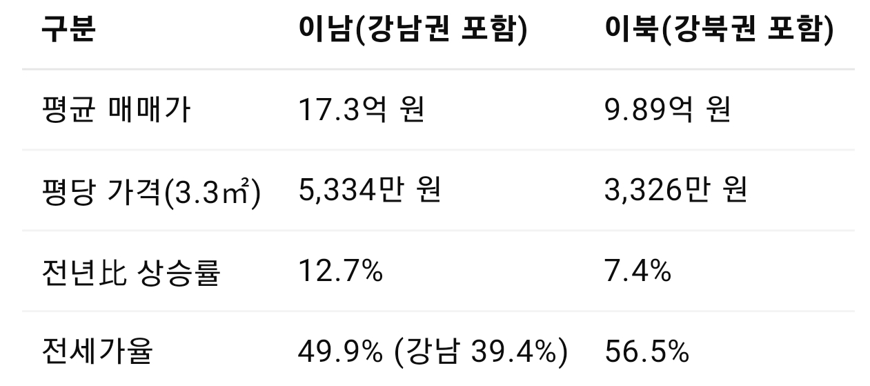 1. 남·북권 아파트값 격차 – 역대 최고치