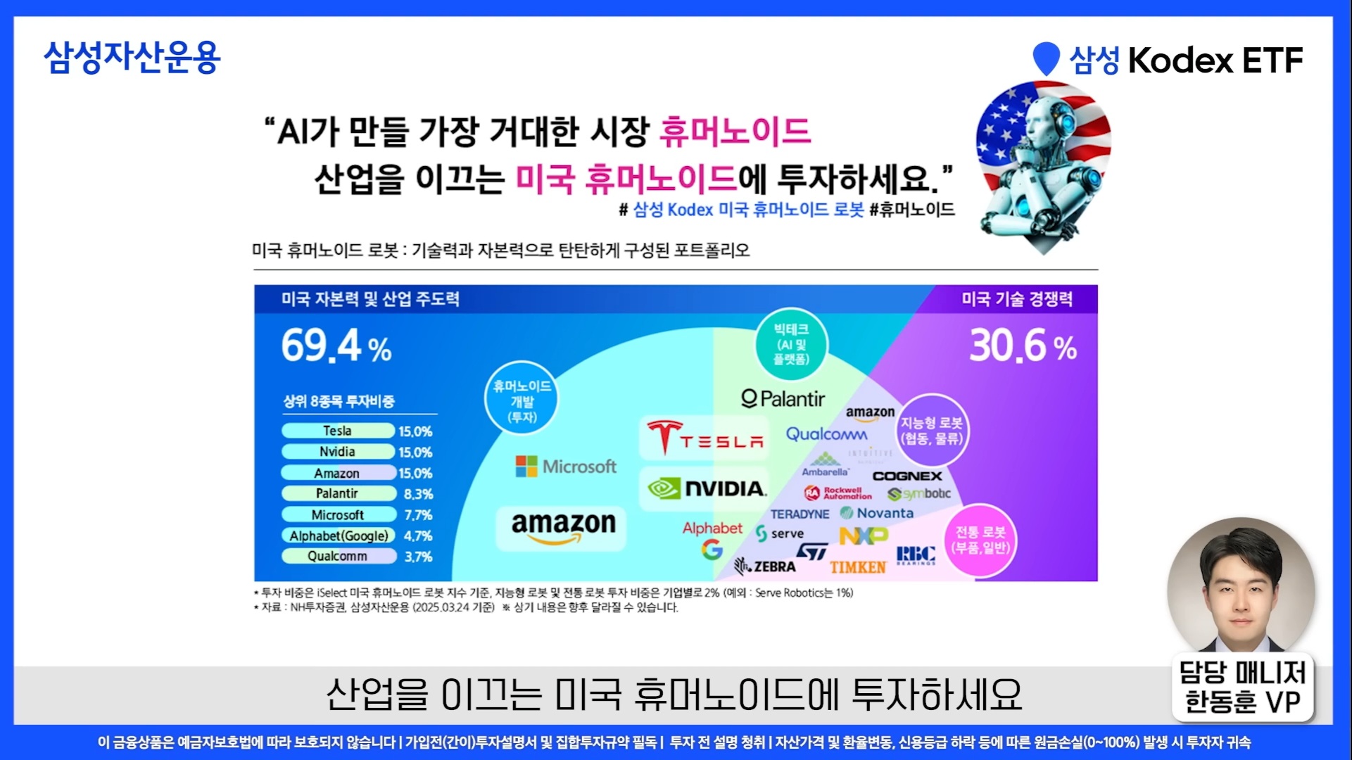 KODEX 미국휴머노이드로봇 ETF는 미국 빅테크 주도의 Physical AI 혁신에 직접 노출되어 있는 고위험·고성장형 테마 ETF입니다.